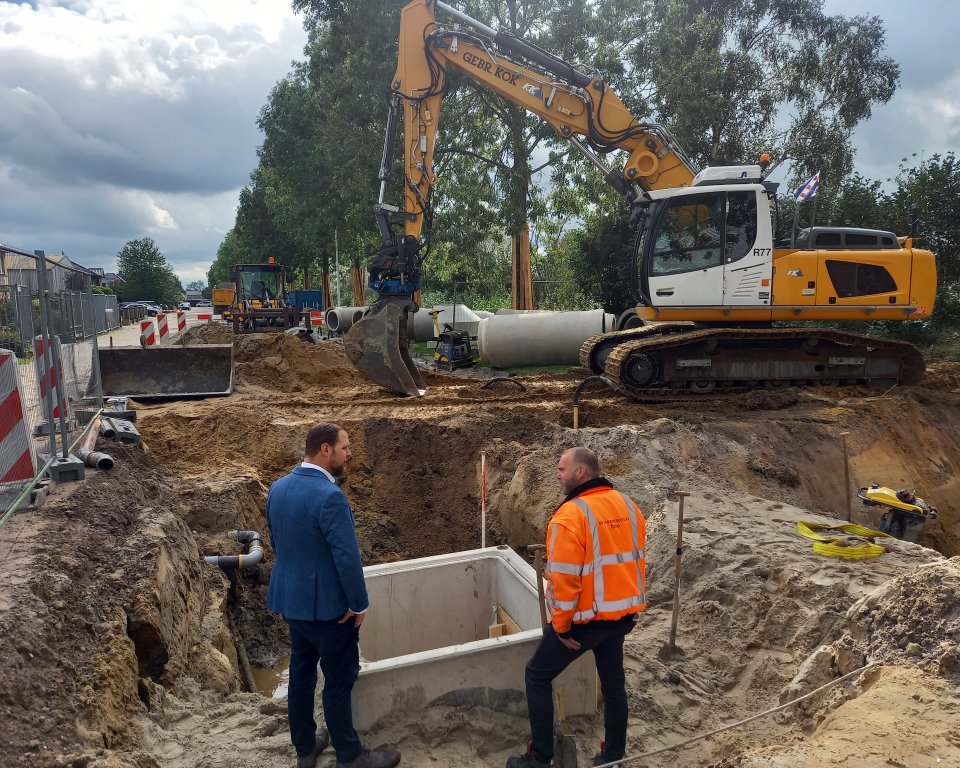 Wethouder Tom Hartog was bij de start van de werkzaamheden: ‘Het is belangrijk dat we werken aan een toekomstbestendige riolering, om nu en in de toekomst wateroverlast te voorkomen. Na de aanpak aan de Houtstraat worden er op meerdere locaties in de gemeente werkzaamheden uitgevoerd'.